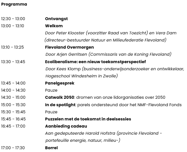Op 20 april organiseert de Vereniging Natuur en Milieufederatie Flevoland een speciaal congres Flevoland Overmorgen.